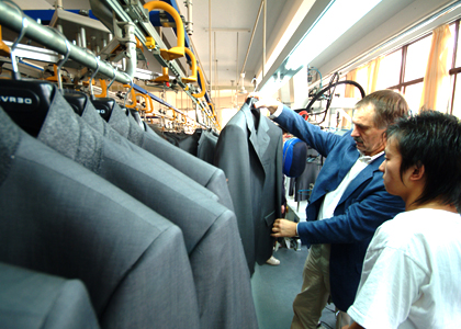 運(yùn)用高品質(zhì)的德國BRISAY立模整燙機(jī),采用電腦控制蒸汽輸出量、溫度、壓力、定型、抽濕時間,根據(jù)面料的厚薄、質(zhì)地、性能,以38種不同整燙程序調(diào)整以上各個參數(shù),配合服裝的整燙。